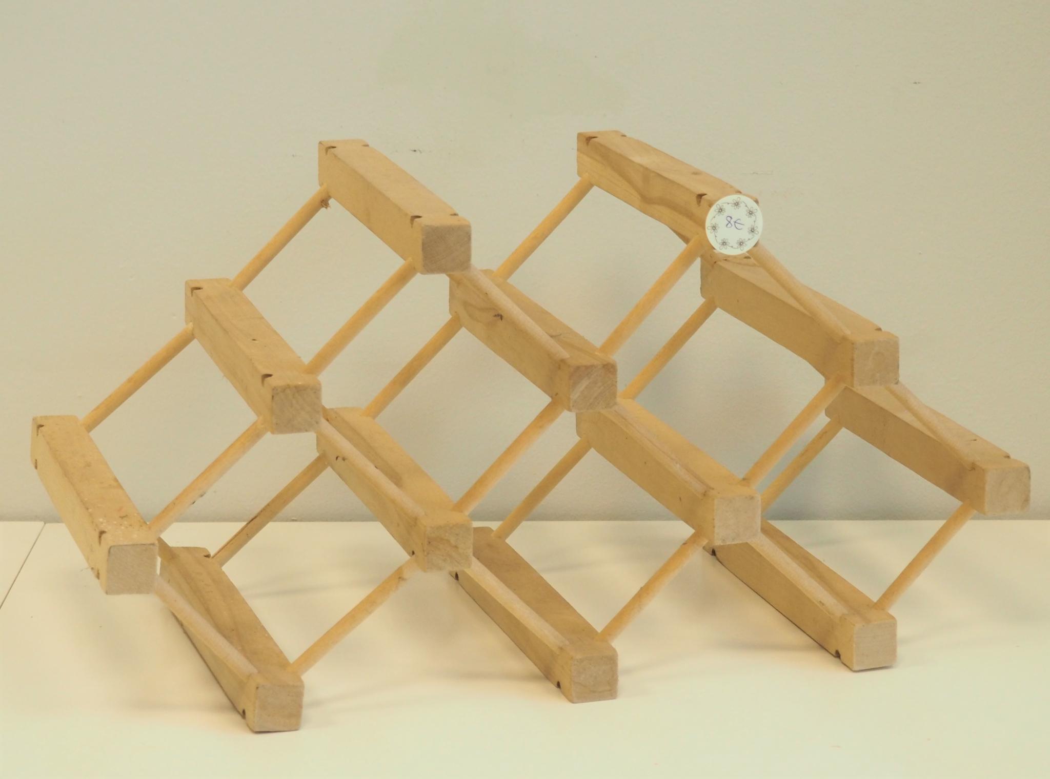Puidust veiniriiul. 46.5x22 cm, kõrgus 24 cm. Seisukord: kasutatud, kulunud.